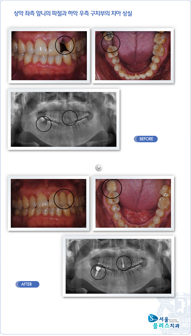 [임플란트] 상악 좌측 앞니의 파절과 하악 우측 구치부의 치아 상실
