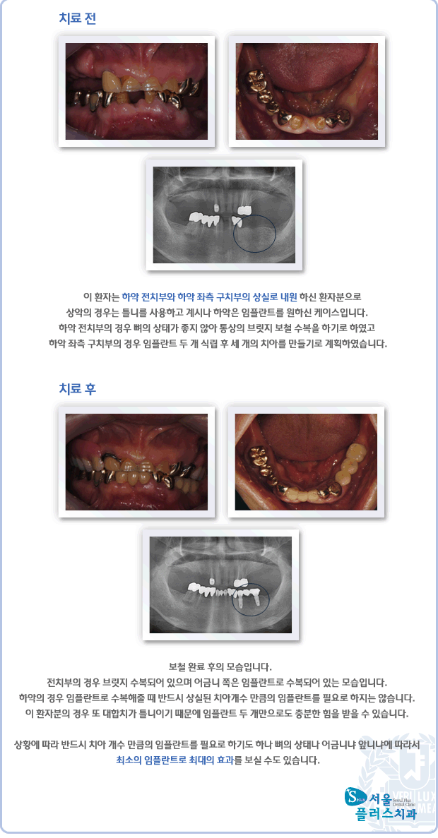 [임플란트] 하악 전치부와 하악 좌측 구치부의 상실로 내원